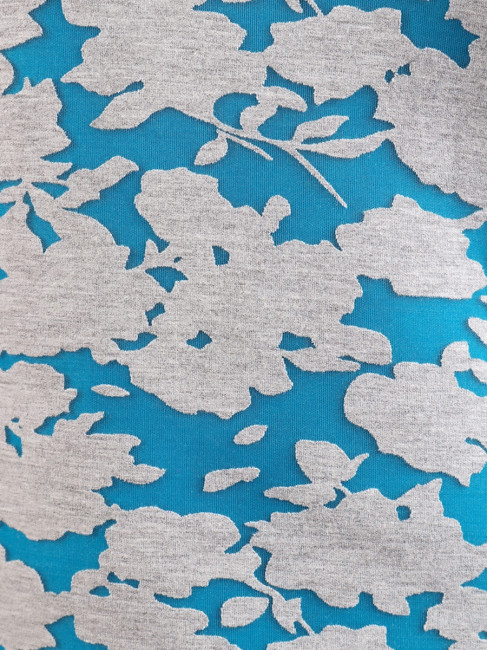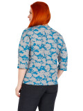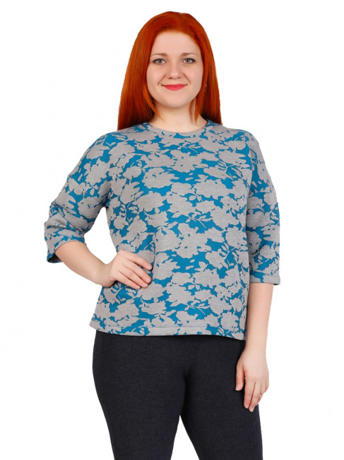 Стильная женская блузка. Крой прямой, рукава-3/4, вырез горловины округдлый, неглубокий. Ткань не мнётся. Материал- Неопрен, который изготавливается на основе вспениной резины. Цвет комбинированный-синий/серый в цветочный декор по всему изделию.