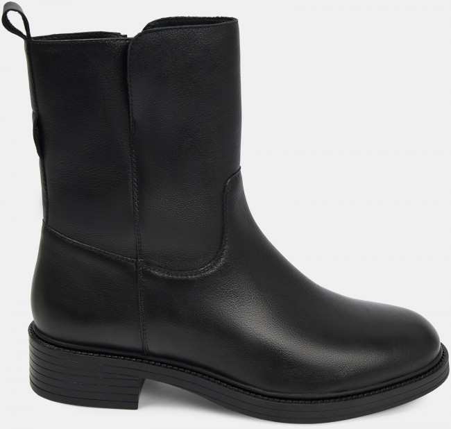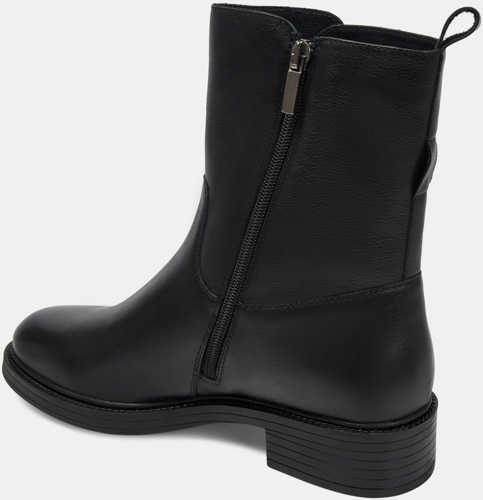 Зимние женские ботильоны LETICIA черного цвета. Модель выполнена из гладкой натуральной кожи. С внутренней стороны имеется надежная молния. Подкладка и стелька утеплены мехом из натуральной шерсти. Устойчивый средний каблук и анатомическая колодка обеспечивают комфорт. Прочная ТЭП подошва отлично амортизирует и держит сцепление на разных поверхностях. Ботильоны дополнят зимний базовый гардероб. Удобная модель под любой casual образ.