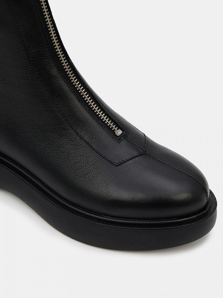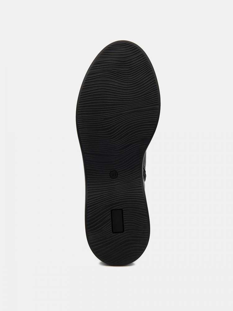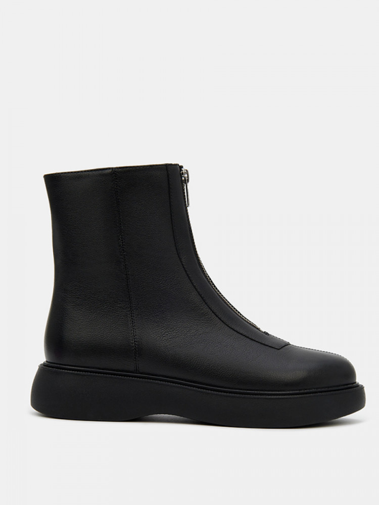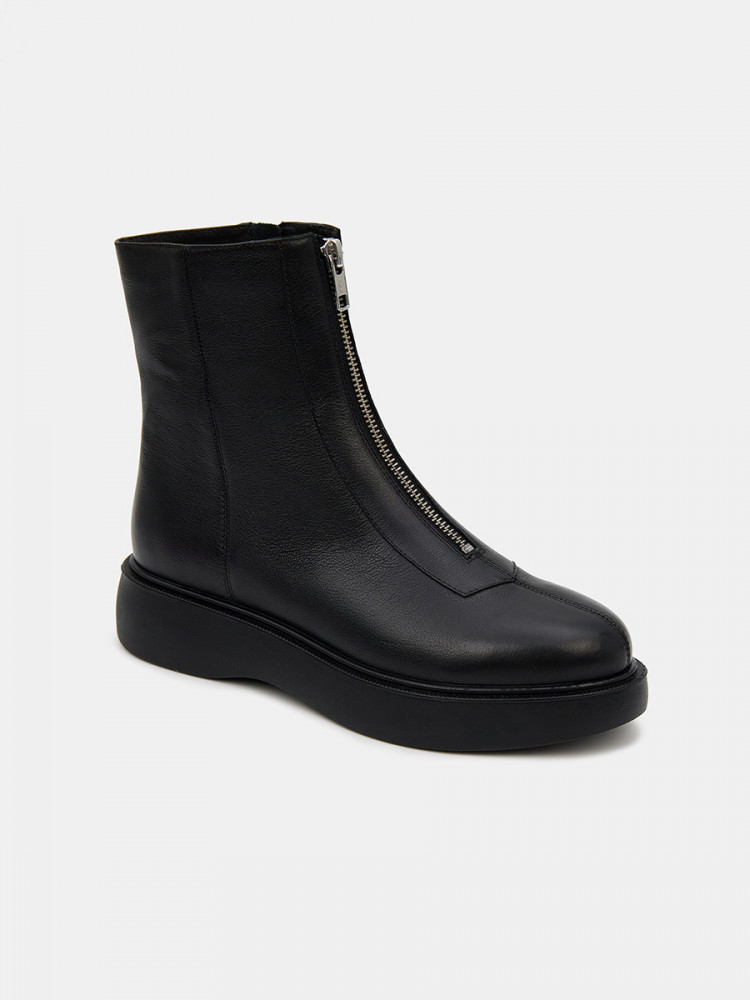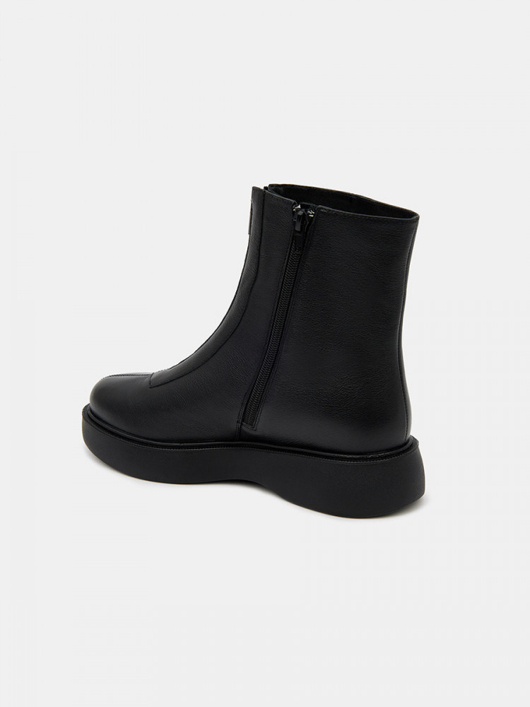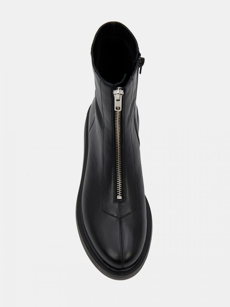 Женские ботинки черно цвета. Верх модели выполнен из натуральной кожи. По центру подъема присутствует удобная молния. Подкладка из сочетания кожи и текстиля отлично впитывает влагу. Анатомическая колодка и мягкая стелька обеспечивают нам комфорт. Подошва из легко полиуретана амортизирует и держит сцепление с любой поверхностью. Модные ботинки для женщин дополнят повседневный casual образ.