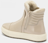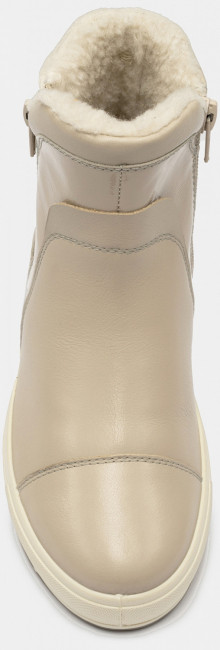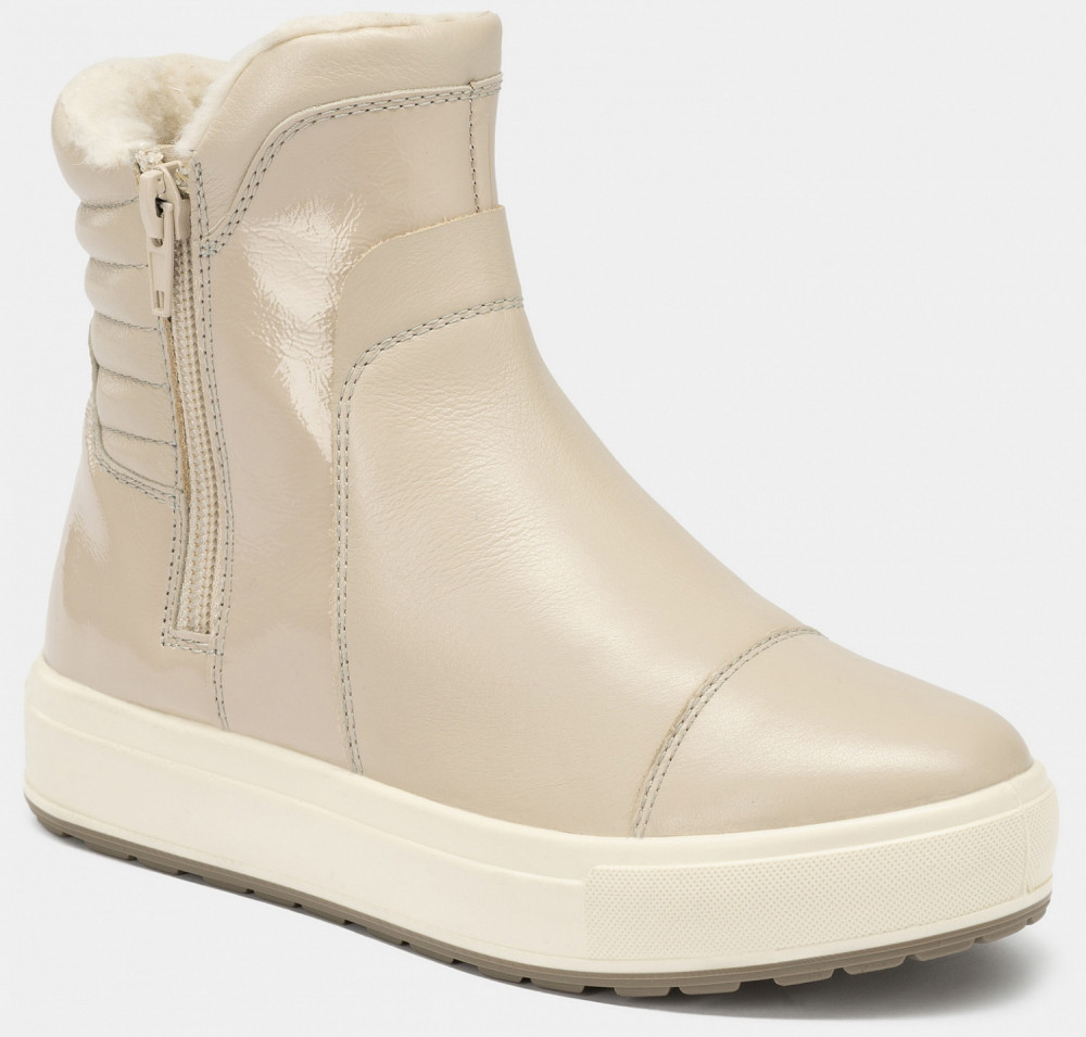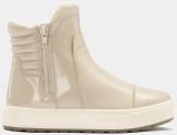 Детские зимние ботинки SHEILA-D кремового цвета созданы из натуральной кожи с лакированными вставками. На задней части расположены мягкие валики, которые исключат натирание. Внутри толстый слой натурального меха, который согреет в самые холодные дни. Сразу две молнии создают интересный визуальный эффект, а также помогают легко надеть обувь. Литьевой метод крепления подошвы создает герметичность на стыке и ботинки остаются сухими в сырую погоду.