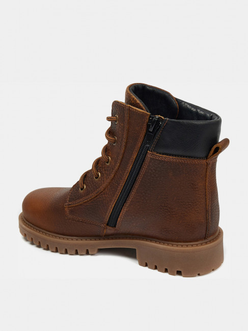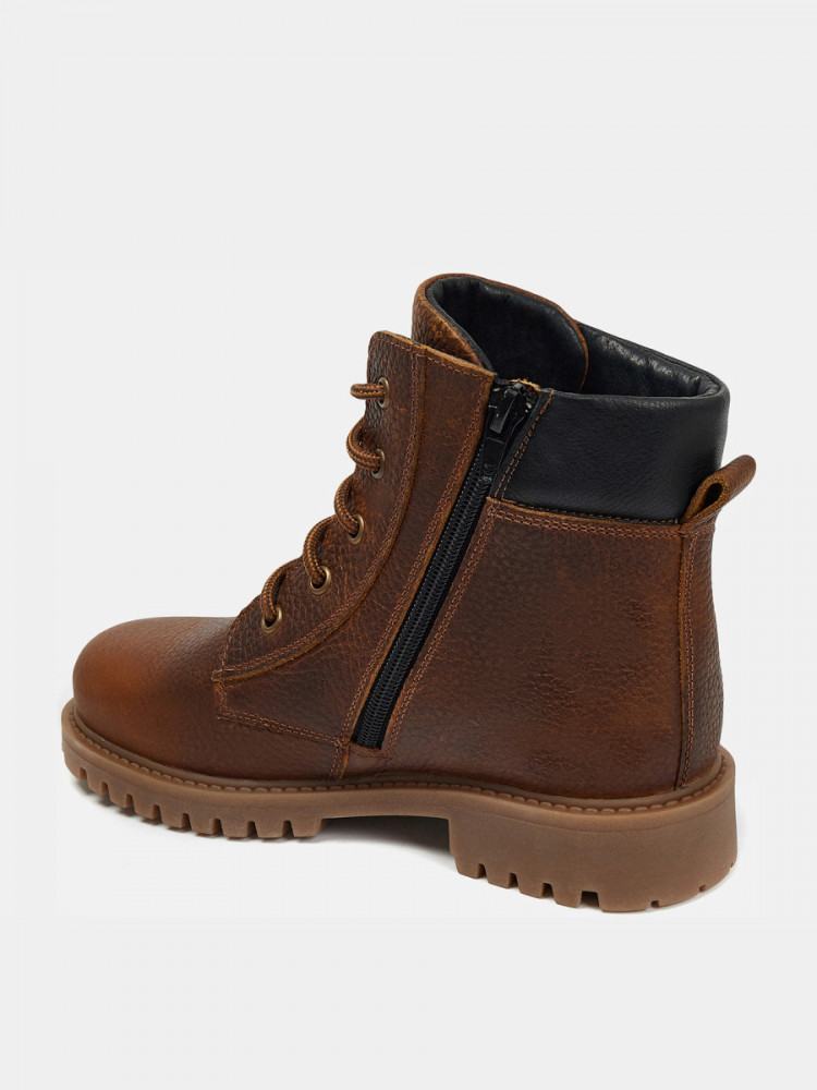 ПодробнееКоричневые ботинки ASPEN-D из натуральной кожи для мальчика. Мягкая деталь на пятке обеспечивает прилегание, шнуровка меняет плотность посадки, молния позволяет быстро обуваться. Текстильные подкладка и стелька пропускают воздух, одновременно утепляя пару. Подошва из ТЭП прочная, не промокает и долго служит. Ботинки детские выдержат активные ежедневные прогулки и школьные будни.