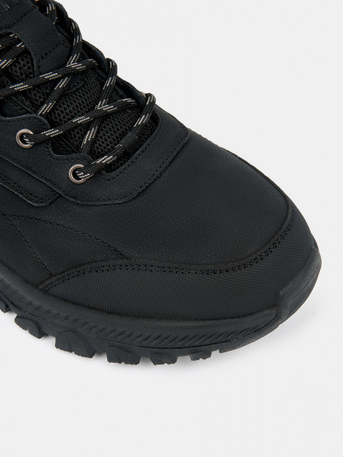 Мужские полуботинки ARMANDO черного цвета. Модель изготовлена из сочетания натурального нубука с покрытием полипротект (PPL) и прочного текстиля оксфорд: материалы долго служат и защищают обувь от грязи и влаги. Подкладка из текстиля аутдор (OUTDOOR) обеспечивает циркуляцию воздуха, конденсацию влаги и сохраняет тепло. Стелька выполнена из текстиля мэш (MESH), гарантирующего оптимальный микроклимат внутри обуви. Шнуровка регулирует посадку. Надежная двухсоставная подошва из файлона и ТЭП держит сцепление с любой поверхностью и уменьшает усталость ног за счет своей легкости и толщины. Полуботинки ARMANDO для мужчин — отличный выбор на дождливое межсезонье. Комфортные полуботинки дополнят повседневный casual и спортивный образ.