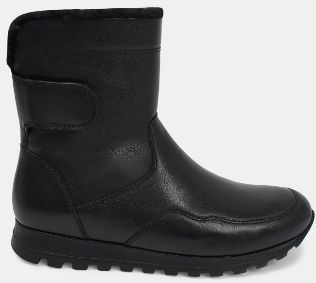 Зимние женские ботинки WALL черного цвета. Верх модели выполнен из качественной гладкой кожи. Удобная боковая молния располагается с внутренней стороны. Подкладка и стелька утеплены натуральным мехом. Подошва из двух видов полиуретана хорошо амортизирует и устойчива к износу. Оригинальный протектор обеспечивает надежное сцепление со снегом и скользкой дорогой. Комфортные ботинки для женщин под любой зимний casual образ.