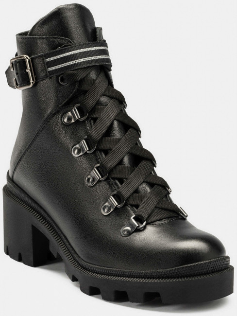 Элегантные ботильоны PATRICIA понравятся тем, кто любит быть в центре внимания. Сочетание массивной подошвы и аккуратной формы колодки создают интересный запоминающийся эффект. Несмотря на массивность, ботинки довольно легкие, что обеспечивает комфорт при ходьбе. Внутри стелька и подклад из натурального меха, а снаружи использована прочная натуральная кожа. Шнурки в виде широкой ленты и декоративный ремешок с серебристыми вставками дополняют стильный дизайн модели. С этой моделью легко создавать самые смелые образы.