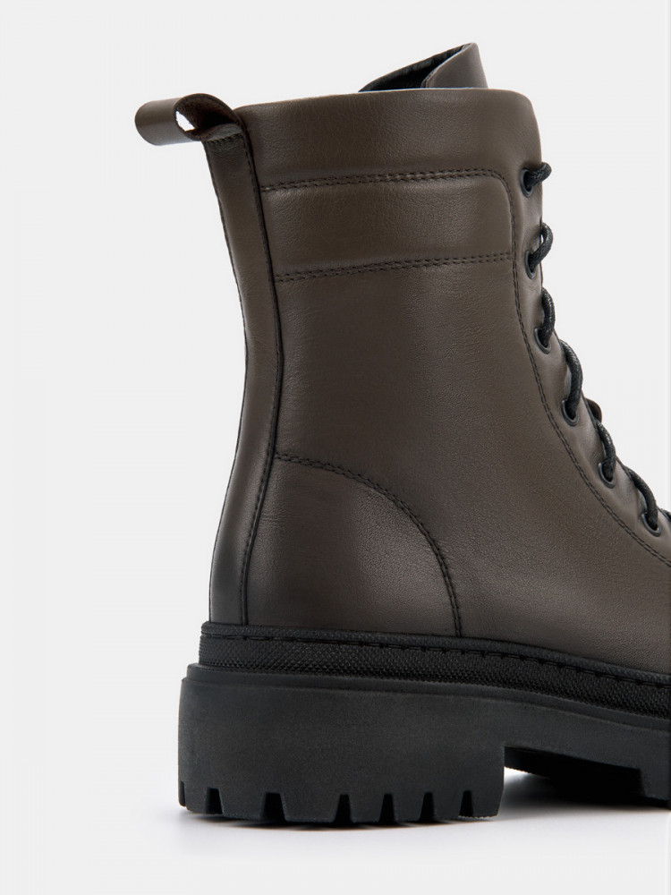 ПодробнееВысокие демисезонные женские ботинки LIVE сложного оттенка хаки. Модель выполнена из качественной натуральной кожи, прочного и дышащего материала. Затемненные носок и пятка создают иллюзию винтажности. Шнуровка регулирует посадку, молния позволяет быстро обуваться. Текстильно-кожаная подкладка и стелька из текстиля отводят влагу и дают стопам дышать, в ботинках комфортно в течение всего дня. Толстая подошва из ТЭП не скользит и долго служит, высокий рант защищает кожу от царапин и промокания. Подошва прошита, она не отклеится. Ботинки хаки дополнят повседневные образы с джинсами и трикотажными платьями в стиле casual. Массивная модель также хорошо будет смотреться с укороченными узкими брюками и объемным свитером.