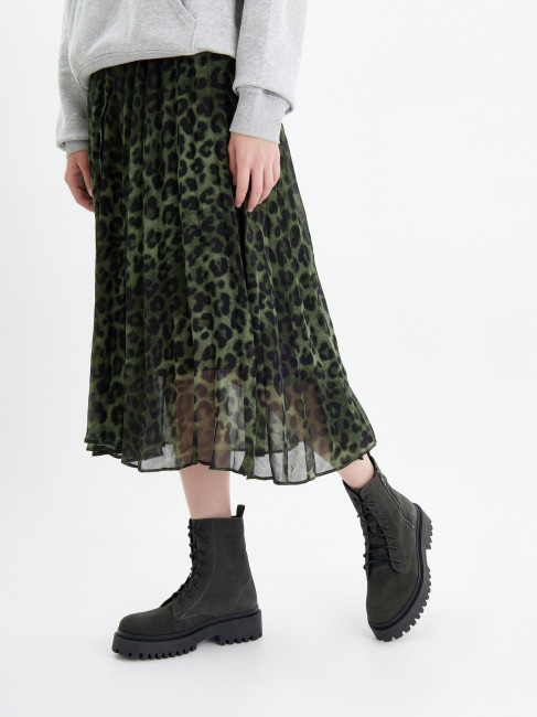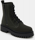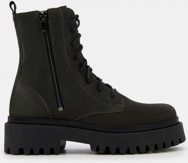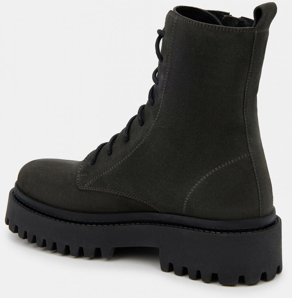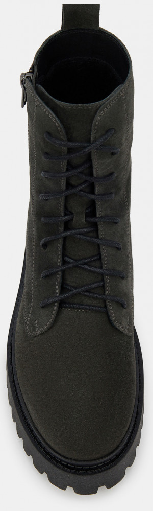 Женские высокие ботинки темно-зелено цвета с молнией на внешней стороне. Верх модели выполнен из качественной натуральной кожи. Подкладка из текстиля и кожи отводит влагу. Гибкая и легкая подошва с каблуком из ТЭП отлично амортизирует и держит сцепление с любой поверхностью. Высокие ботинки на межсезонье дополнят повседневный гардероб и модный casual образ.