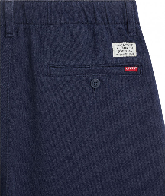 Мужские брюки чино Levis черного цвета. Выполнены из хлопка с добавлением эластана для комфорта движения. Брюки от Levis свободного кроя, брючины слегка сужаются к щиколотке. Посадка чуть ниже талии. Эластичная талия со скрытой кулиской. Карманы спереди, два кармана с на пуговицах в тон сзади. Мягкие на ощупь, удобные брюки не только удачно сочетаются с футболкой и кедами, но в купе с пиджаком поддержат классический образ.