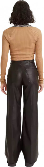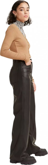 ПодробнееБрюки Levis клеш в стиле 70х. Свободный крой от бедра, высокая посадка. Застежка на молнии. Расклешенные брюки выполнены из искусственной кожи. Классический стиль с пятью карманами. Фирменный лейбл Levis и дугообразные строчки на задних карманах.