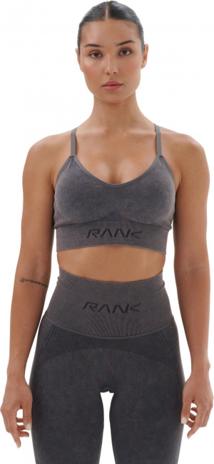- Широкий ребристый пояс под грудью с логотипом RANK создает дополнительную поддержку и подчеркивает уникальный стиль бра.