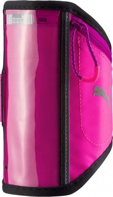 Нарукавная сумочка для бегуна имеет прозрачное «окошко» под размер экрана 6-ого айфона, позволяющее осуществлять сенсорное управление электронным устройством, а также дополнительное отделение на молнии для ключей и мелких предметов. Имеется петлица для шнура наушника или гарнитуры айфона. Сумочка украшена спереди цветным набивным логотипом PUMA, а сбоку - логотипом PUMA из светоотражающего материала для повышения вашей безопасности в темное время суток. Также светоотражающим материалом обработан язычок застежки-молнии. Сумочка надежно крепится к руке при помощи эластичного держателя регулируемой длины с пластиковой фурнитурой и выпускается двух размеров: S/M (на окружность бицепса 24-29 см) и L/XL (на окружность бицепса 30-38 см).