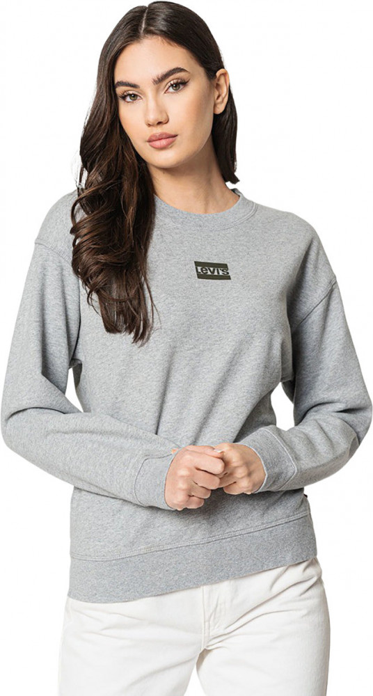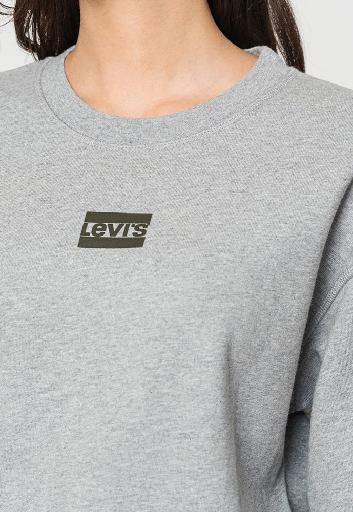 ПодробнееСвитшот Levis серого цвета. Выполнен из мягкого хлопка. Классический крой, круглый вырез горловины. Подол и манжеты в рубчик. Принт LEVIS на груди.
