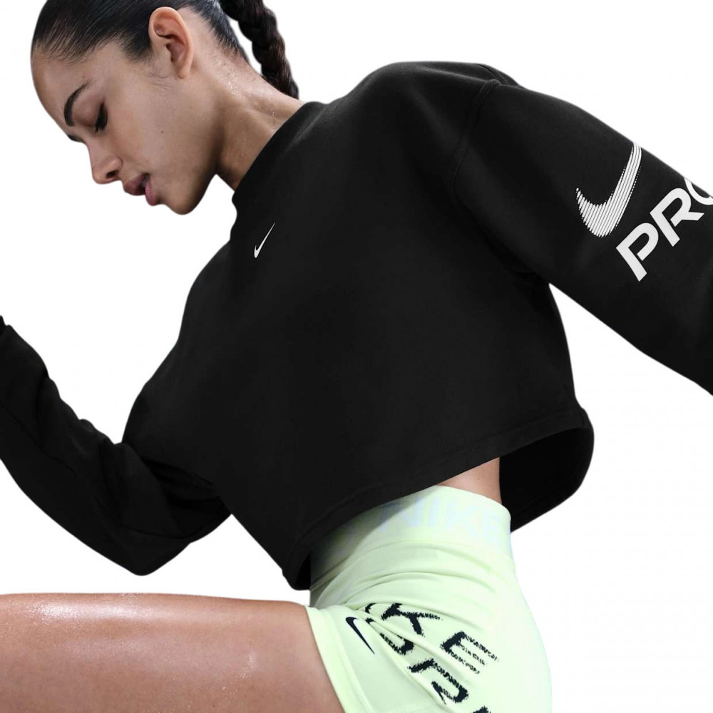 ПодробнееСогревайтесь и тренируйтесь в этом просторном, влагоотводящем топе. Он сшит из ткани френч-терри средней плотности (с неначесанными петлями на изнанке), которая отличается структурированной, дышащей и мягкой текстурой. Бескомпромиссный и уверенный стиль подходит ко всему. От леггинсов и топов до многого другого — Nike Pro готов дополнить ваш гардероб вещами, которые помогут вам выделиться. Технология Nike Dri-FIT отводит пот с кожи, обеспечивая более быстрое испарение, помогая вам оставаться сухим и чувствовать себя комфортно. Укороченная длина. Напечатанный логотип Swoosh на груди. Печатная графика на рукавах.
