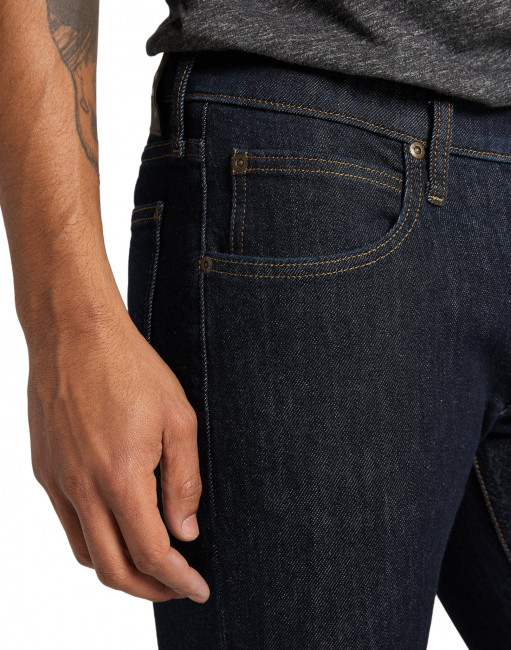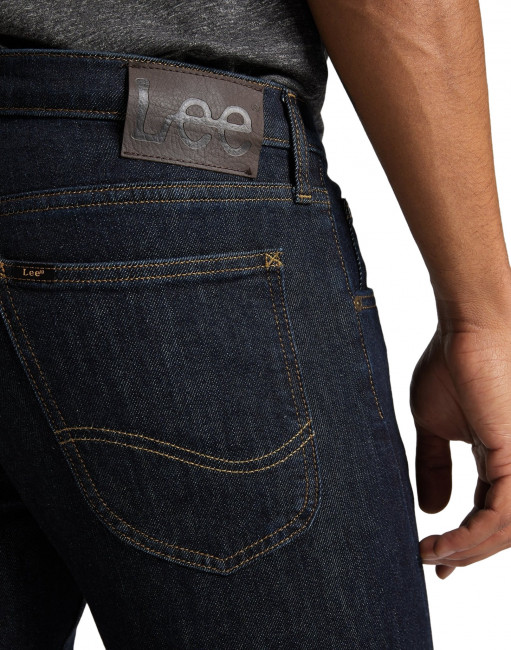 ПодробнееМужские темно-синие джинсы Lee Luke. Выполнены из однотонного денима с добавлением эластана для комфорта движения. Классические джинсы от Lee слегка зауженного кроя. Средняя посадка. Легендарная кожаная нашивка на задней стороне пояса. Застежка на молнии. Карманы спереди, два кармана с фирменной строчкой Lee сзади.