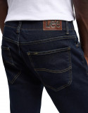 ПодробнееМужские черные джинсы Lee Slim Fit MVP. Облегающие ультракомфортные классические джинсы. Серия Extreme Motion — это идеальное сочетание экстремального комфорта, свободы движений и аутентичного денима в облегающем исполнении. Ширинка на молнии. Джинсовая ткань с фирменным видом - выстиранная черная отделка с потертостями на линих складок для создания винтажного эффекта. Имеют резинку на удобном спортивном поясе, фирменную пуговицу в форме пончика и кожаную нашивку.