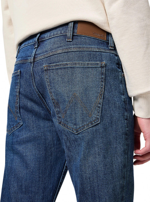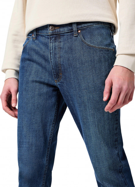 ПодробнееМужские джинсы Wrangler Regular синего цвета прямого кроя. Выполнены из из денима с добавлением эластана для комфорта движения в течение всего дня. Застежка на молнии. Средняя посадка. Карманы спереди, два кармана с фирменной строчкой W и легендарной кожаной нашивкой бренда сзади.
