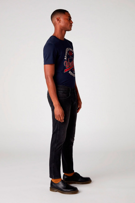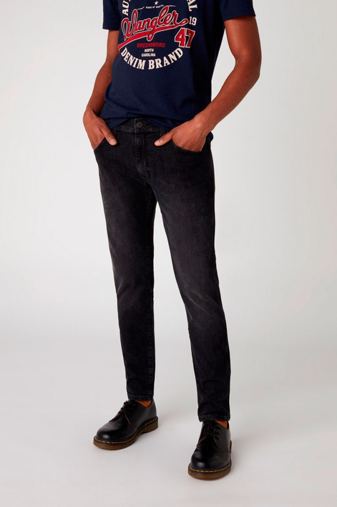ПодробнееМужские черные джинсы Wrangler зауженного кроя. Выполнены из денима с добавлением эластана для комфорта движения. Застежка на молнии. Средняя посадка. Карманы спереди, два кармана с фирменной строчкой W и легендарной кожаной нашивкой бренда сзади.