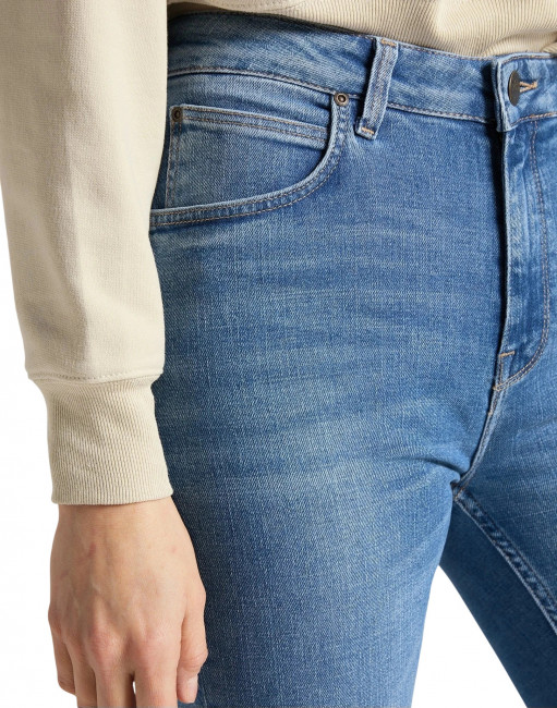 Женские джинсы Lee Breese в стиле ретро - суперкрутые расклешенные джинсы. Современный взгляд на винтажную классику, Breese отличается завышенной талией и узкой посадкой от бедра до колена, которая расширяется к низу. Меньшие и расположенные выше обычного карманы создают привлекательный вид сзади.