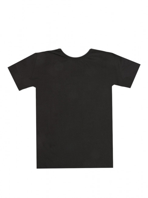 Классическая футболка для мальчика свободного прямого кроя с круглым, неглубоким вырезом горловины и прямыми короткими рукавами. Материал – хлопок без синтетических волокон. Цвет – черный. Без карманов, рисунков и других декоративных элементов. Недорогой и практичный вариант на каждый день. Сочетается с любой одеждой, кроме строгих классических костюмов.