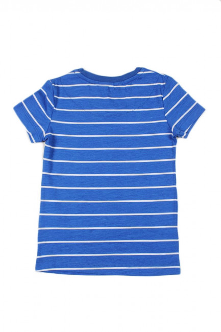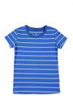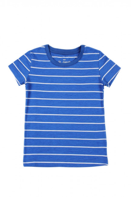 Стильная футболка для девочки. цвет-синий в полоску. Крой прямой, вырез горловины округлый неглубокий. Материал-качественный хлопок с небольшим (8%) добавлением полиэстра. Отлично подходит для повседневной носки.