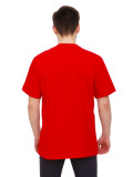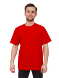 Повседневная мужская однотонная футболка прямого кроя. Вырез орловины округлый, не глубокий. Цвет-красный, однотонный. Материал-100% качественный хлопок без добавления синтетических нитей.