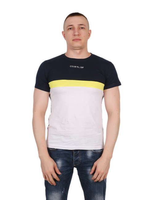 Футболка мужская, цвет чтёмно-синий/жёлтый/белый, с вышивкой