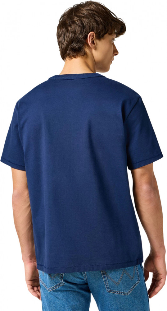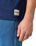 Особое внимание привлекает тканый логотип Wrangler, расположенный чуть выше подола, который подчеркивает высокое качество и узнаваемый стиль бренда. Эта деталь придает футболке уникальный акцент, делая её не только комфортной, но и стильной.