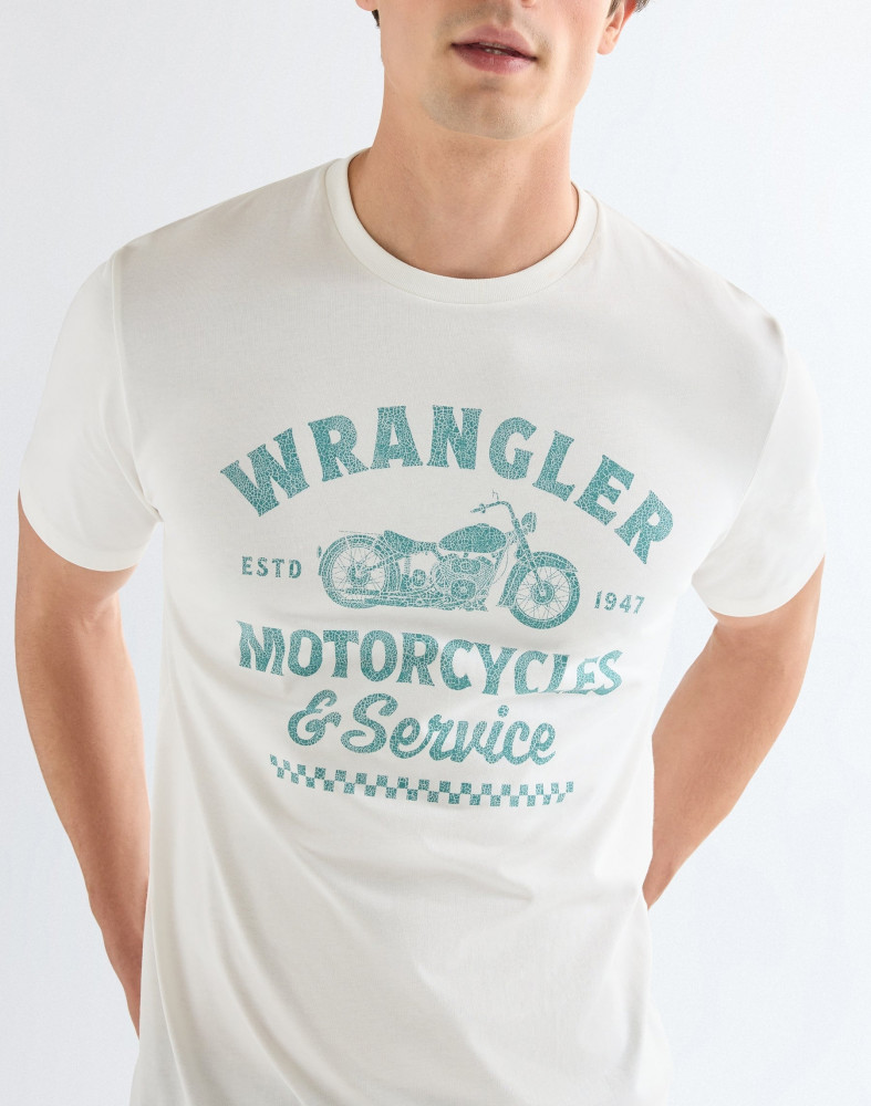 ПодробнееФутболка Americana классического кроя — незаменимый элемент гардероба. Эта винтажная футболка белого цвета — дань уважения наследию Wrangler. Она украшена оригинальным графическим рисунком на груди. Футболка имеет удобный классический крой и круглый вырез. 100% хлопок.
