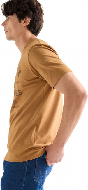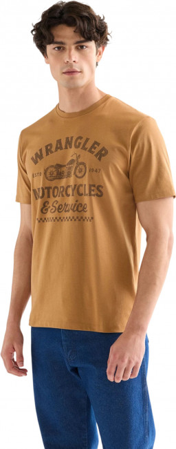 ПодробнееФутболка Americana классического кроя — незаменимый элемент гардероба. Эта винтажная футболка коричневого цвета — дань уважения наследию Wrangler. Она украшена оригинальным графическим рисунком на груди. Футболка имеет удобный классический крой и круглый вырез. 100% хлопок.
