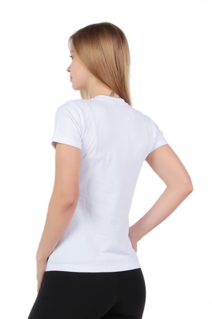 Классическая женская футболка, один из элементов базового гардероба. Крой приталенный, длина средняя, рукава короткие, прямые, вырез горловины овальный. Цвет – белый, без принта и накладных декоративных элементов. Материал – 92% хлопок 8% лайкра. Такую модель футболки можно сочетать как со спортивными вещами, так и с одеждой делового стиля.