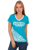 Стильная женская футболка "SOCHI". Крой прямой, вырез горловины V-образный. Цвет-бирюзовый с принтом. Материал-100% качественный хлопок, без добавления синтетических нитей. Отличный вариант для летнего отдыха!