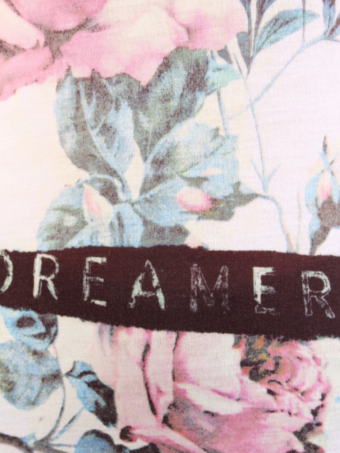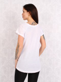 Стильная женская футболка. Вырез горловины округлый, неглубокий. Основной цвет изделия белый. Футболка декорирована принтом. Материал-100% полиэстер