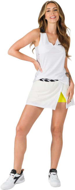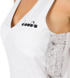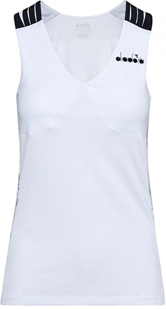 ПодробнееЖенская теннисная майка. Не следует пренебрегать женственностью и на теннисном корте. Легкая эластичная полиэфирная ткань этой майки обеспечивает максимальный комфорт во время тренировок, не забывая при этом о женственности. Мягкий топ с V-образным вырезом из эластичной сетки с боковыми вставками с принтом и вырезанной лазером вставкой на плечах. Сотовая структура ткани, разработанная компанией Diadora. Эффективно впитывает и отводит влагу и пот. Плоские швы для максимального комфорта.