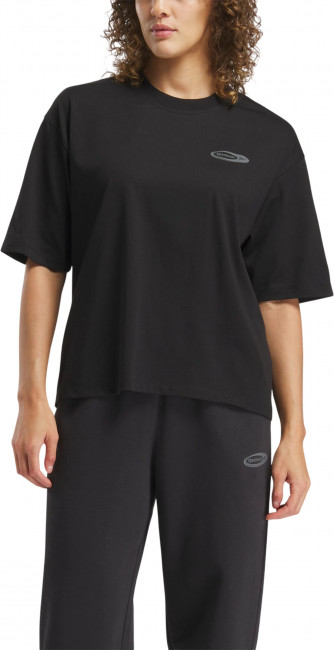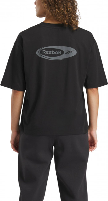 ПодробнееОсвежите свои базовые вещи с помощью этой женской футболки. Хлопковый трикотаж приятен на ощупь, а свободный крой и свободный силуэт делают ее универсальной и стильной. Графика Reebok демонстрирует гордость за ваш бренд.