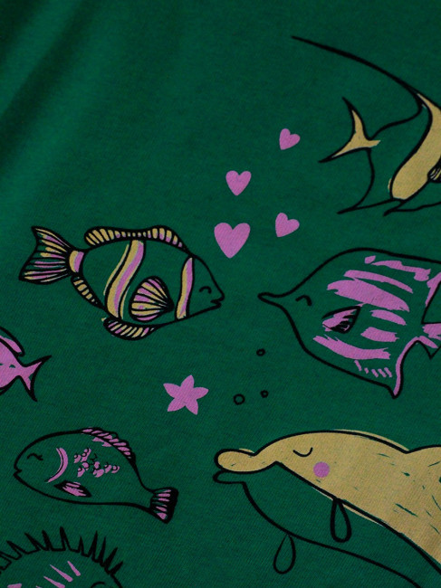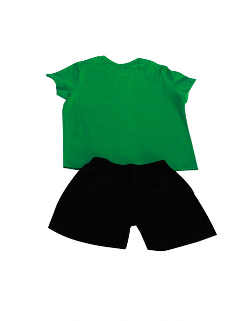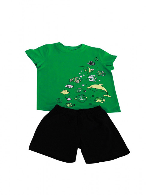 Комплект для девочки (футболка/шорты), цветзелёный/чёрный, с принтом