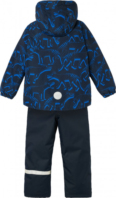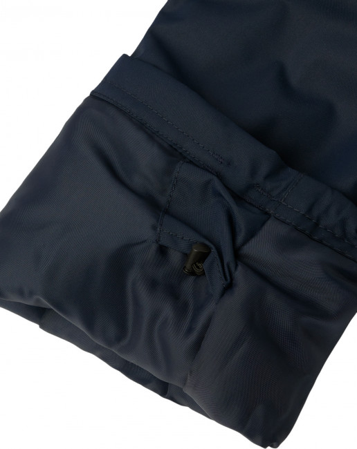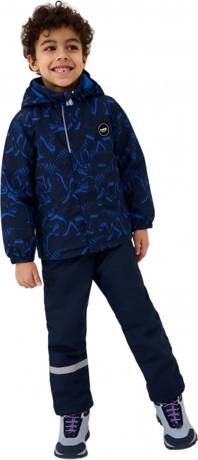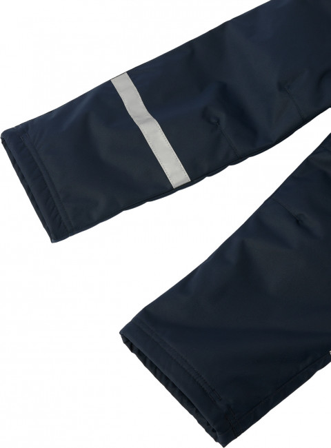Чтобы куртка и брюки сидели комфортно и под них не попадал снег, предусмотрены эластичные манжеты на рукавах и штанинах, а также регулируемый подол. Светоотражающие детали делают ребенка заметным в темноте.