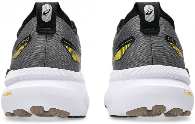 - Технология PureGEL в области пятки смягчает ход, делая тренировки на дистанции более приятными и комфортными.