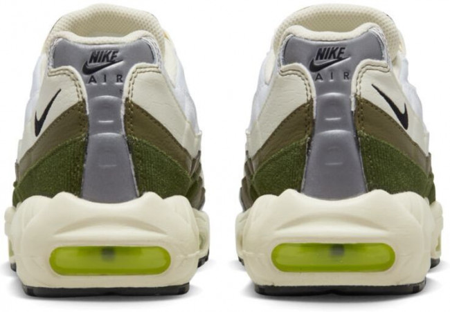 Смелый и модный образ дополняет кремовая межподошва с удобными неоново-зелеными вставками Air. Наконец, эти Air Max 95 оснащены прочной черной подошвой. Эта обувь создана для тех, кто хочет заявить о себе!