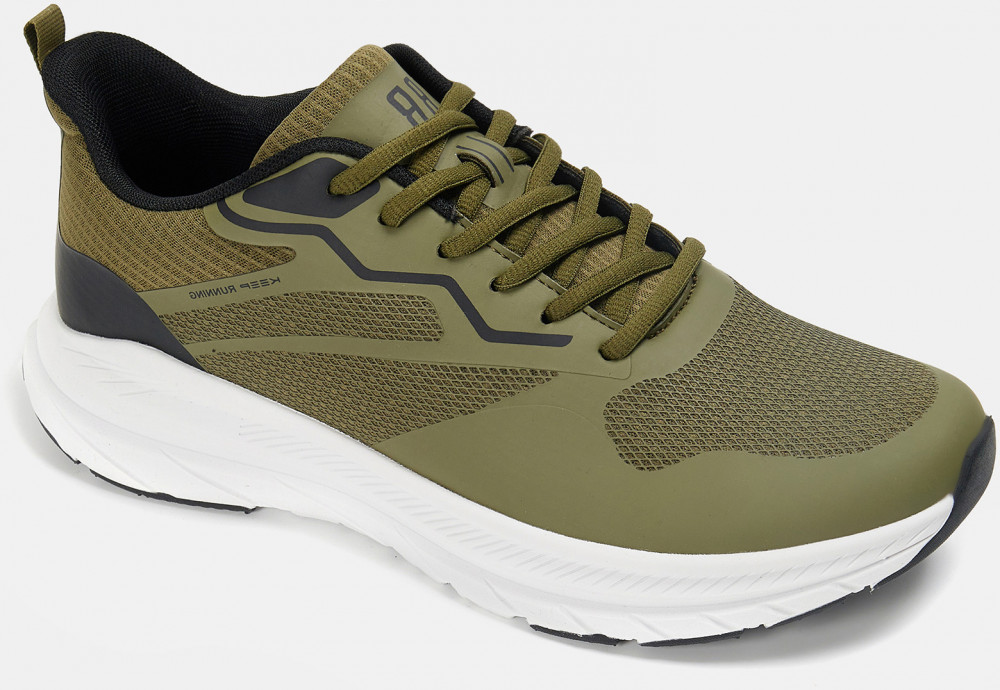 Спортивные мужские кроссовки цвета хаки. Верх модели выполнен из технологичного и гибкого материала, который свободно пропускает воздух и позволяет ногам "дышать". Подошва из термопластичной резины поддерживает правильное положение стопы, смягчает неровности дороги и имеет отличное сцепление с любой поверхностью. Стильные, легкие и технологичные кроссовки для комфортных городских будней.