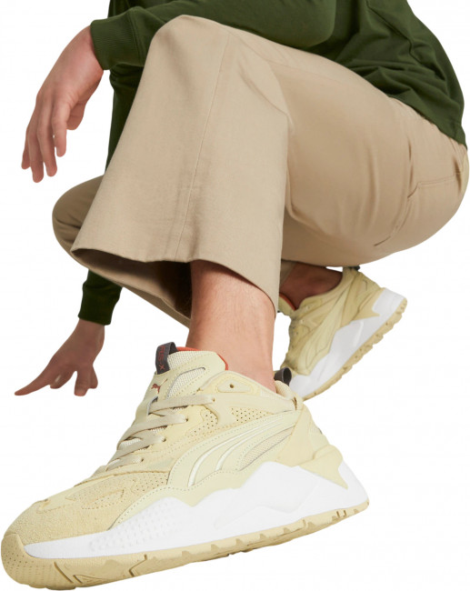 ПодробнееМодель RS-X возвращается. Силуэт этих кроссовок, сочетающий элементы стиля ретро и футуризма, возвращается с прогрессивной эстетикой и угловатыми деталями, и такая комбинация создает сногсшибательный образ, свидетельствующий о вашем потрясающем стиле. Эта вариация дополнена перфорированной основой из замши с замшевыми накладками.
