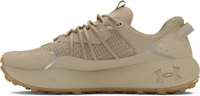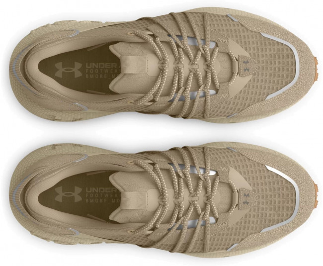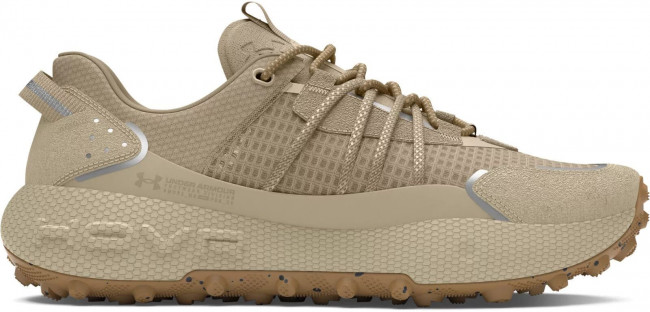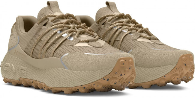 Верх в кроссовках сделан из прочного рипстопа с зонами из сетки для лучшего проветривания и отвода влаги от стопы. Шнуровка с внешними прочными петлями для более плотной фиксации стопы внутри кроссовка и лучшей управляемости в сложных условиях пересечённой местности. Внутри кроссовок размещена мягкая стелька из пенистого материала, которая увеличивает комфорт при длительном использовании. Промежуточная подошва сделана из фирменной пены UA HOVR с отличными характеристиками по рассеиванию ударной нагрузки и возврату энергии во время отталкивания. Подошва полностью закрыта подметкой из износостойкой резины с агрессивным дизайном протектора, который специально разработан для бега по грунту.