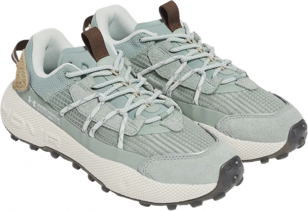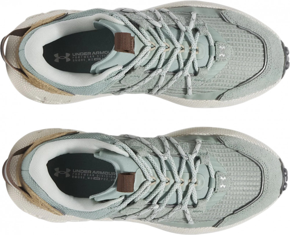Верх в кроссовках сделан из прочного рипстопа с зонами из сетки для лучшего проветривания и отвода влаги от стопы. Шнуровка с внешними прочными петлями для более плотной фиксации стопы внутри кроссовка и лучшей управляемости в сложных условиях пересечённой местности. Внутри кроссовок размещена мягкая стелька из пенистого материала, которая увеличивает комфорт при длительном использовании. Промежуточная подошва сделана из фирменной пены UA HOVR с отличными характеристиками по рассеиванию ударной нагрузки и возврату энергии во время отталкивания. Подошва полностью закрыта подметкой из износостойкой резины с агрессивным дизайном протектора, который специально разработан для бега по грунту.