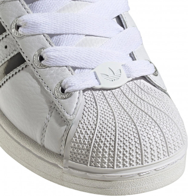 ПодробнееКеды adidas Superstar всегда воплощали спортивный дух с бунтарским уклоном. Привнося в икону свежий взгляд, эти кроссовки сияют лакированными кожаными тремя полосками и пяткой на гладкой кожаной основе. Отличительный резиновый носок-ракушка предлагает фирменный стиль, как и более 50 лет назад. Исследуете ли вы город или отдыхаете, эти низкие кроссовки обеспечат вам комфорт в течение всего дня.