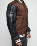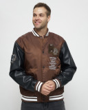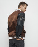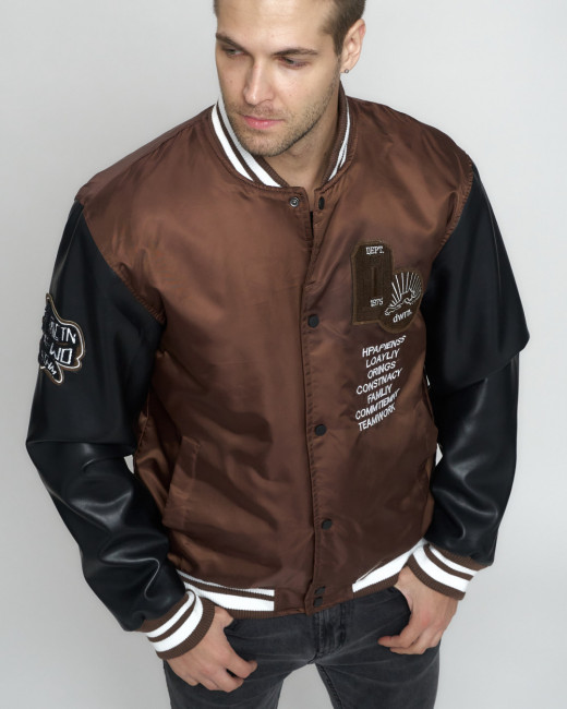 Задаетесь вопрос как освежить мужской образ? Надоели обычные куртки? Бомбер мужской утепленный – незаменимый элемент верхней мужской одежды. Куртка-бомбер – это стильная и модная демисезонная куртка особенно популярная и актуальная в этом сезоне. Мужская демисезонная куртка выполнена из высококачественной ткани(гладкий полиэстер) и экокожи с водоотталкивающей пропиткой и ветрозащитными свойствами. Рукава изготовлены из искусственной кожи высочайшего качества. Правое плечо бомбера украшает оригинальная тканевая нашивка. Воротник-стойка из трикотажа. Стягивающие резинки на манжетах и в нижней части, приходящейся на район пояса. Косые карманы на кнопках. Внутренний карман достаточно вместительный, что позволит хранить кошелек либо документы. На груди бомбер украшен вышитой надписью и нашивкой в тон куртки. В качестве утеплителя используется холлофайбер. Мужской бомбер - это отличная альтернатива мужской стеганной спортивной куртке, пуховику, ветровке, косухе, мотокуртке. Бомбер мужской подходит не только как повседневная верхняя одежда, но также подойдет в качестве спортивной куртки для занятий спортом на свежем воздухе: бег, ходьба, велоспорт, мотоспорт, скейтборд, для походов, путешествий.