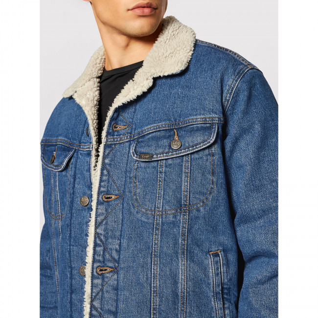 Мужская джинсовая куртка Lee с утеплителем из шерпы и традиционными деталями. Заостренный воротник с отделкой из белой шерпы. Скошенная кокетка. Планка на пуговицах с фирменной строчкой спереди. Боковые карманы. Нагрудные карманы с клапанами на пуговицах. Регулируемый ремешками подол. Пуговицы из состаренной латуни и контрастная нить придают этой модели культовый вид. Джинсовка Lee классического кроя выполнена из хлопка сдобавлением эластана и подходит для ношения в прохладные дни.