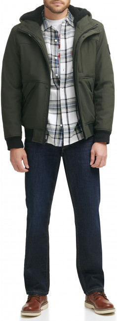 ПодробнееМужская куртка Levis Soft Shell Sherpa Lined Hoody Bomber Jacket - это куртка-бомбер с капюшоном и подкладкой из шерпы. Имеет один нагрудный карман слева на молнии, два нижних прорезных кармана на кнопках, спереди застежка-молния с планкой на кнопках.