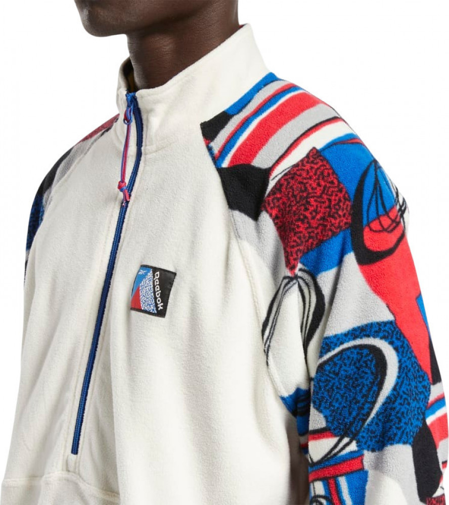 Этот джемпер Reebok с ярким принтом и просторным кроем делает его удобным. Половинная молния идеально подходит для тех дней, когда вам нужна дополнительная передышка.