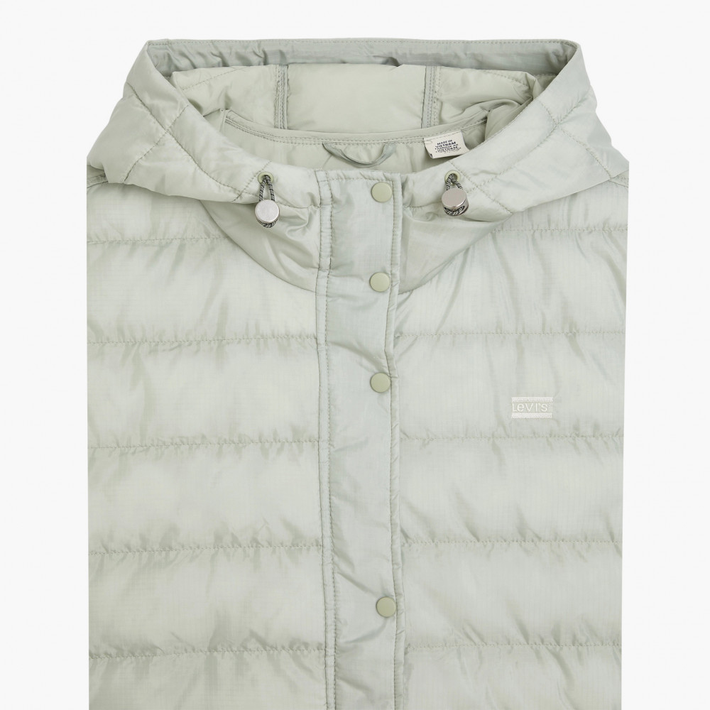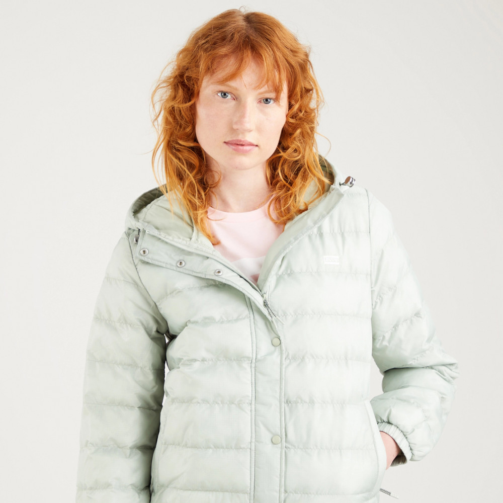 ПодробнееЖенская стеганая куртка Levis Edie Packable Jacket укороченного кроя. Имеет высокий воротник, капюшон и подол с регулировкой, эластичные манжеты. Боковые карманы для рук. Застегивается на молнию и кнопки. Логотип в виде вышивки Levis на груди слева в тон куртки. Облегченный стеганый крой позволяет брать эту куртку с собой в любое путешетсвие, чтобы согреть в прохладные дни.
