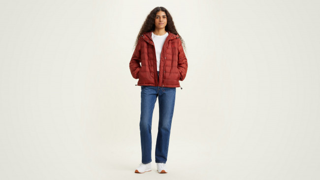ПодробнееЖенская стеганая куртка Levis Edie Packable Jacket укороченного кроя. Имеет высокий воротник, капюшон и подол с регулировкой, эластичные манжеты. Боковые карманы для рук. Застегивается на молнию и кнопки. Логотип в виде вышивки Levis на груди слева в тон куртки. Облегченный стеганый крой позволяет брать эту куртку с собой в любое путешетсвие, чтобы согреть в прохладные дни.