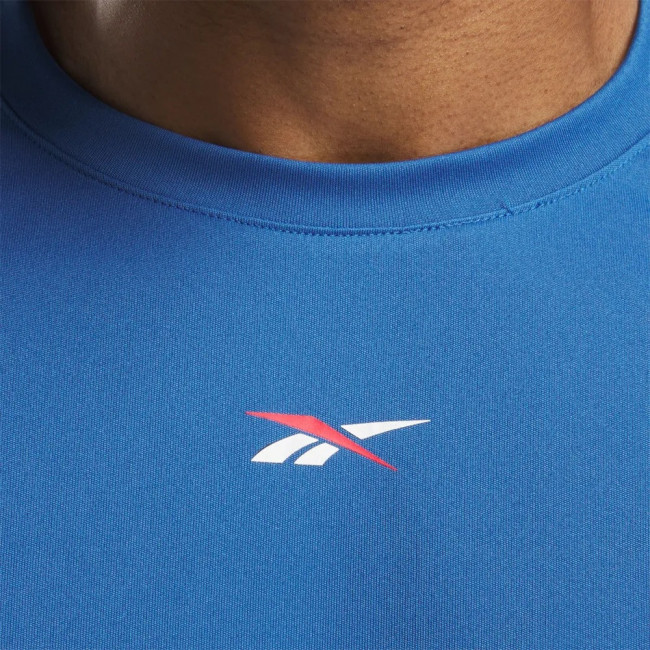 ПодробнееТренируйтесь или просто отдыхайте в этой мужской тренировочной футболке. Она обеспечивает комфорт, как бы вы ни старались, благодаря легкой трикотажной ткани. Графика Reebok сохраняет спортивный стиль. Предназначено для: тренировок и повседневной носки. Покрой: стандартный крой со стандартным пространством и прямым силуэтом.