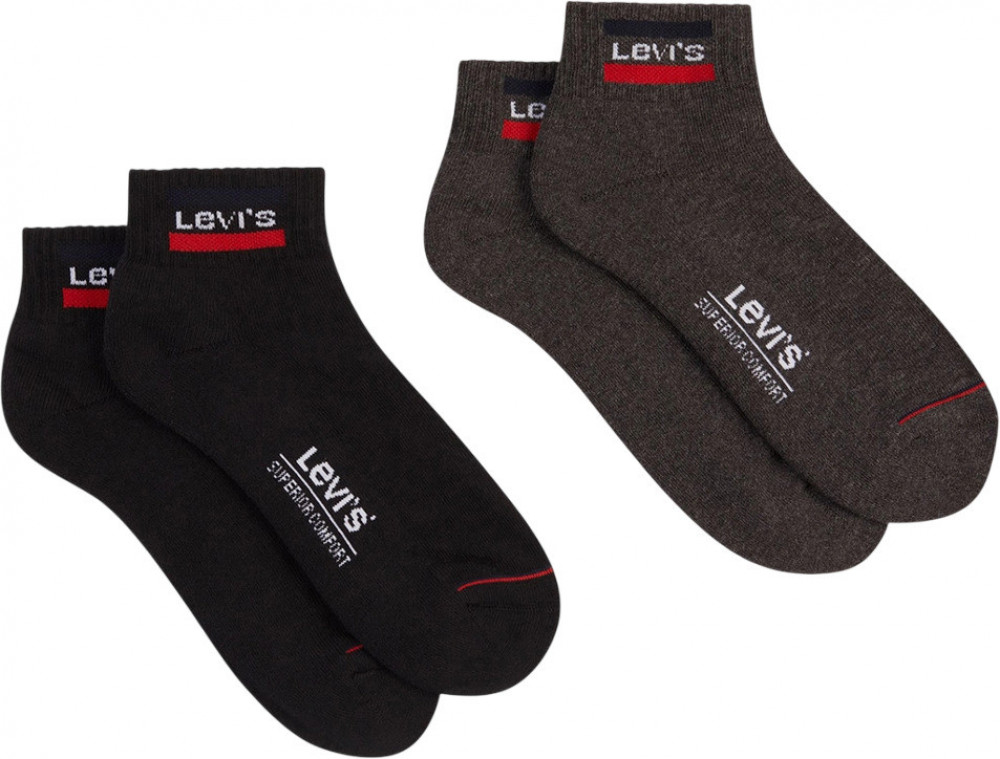 Мягкие и удобные носки средней длины Levis. Модель выполнена из эластичного материала. Усиленная пятка и носок. В упаковке 2 пары.